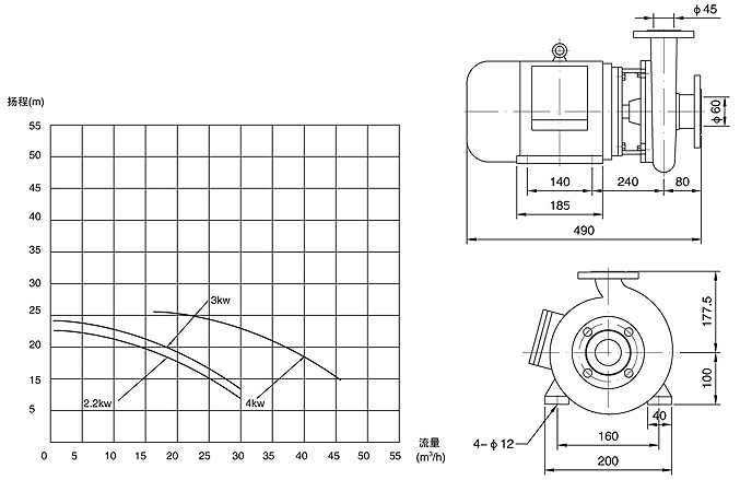 | 說明: 1.法蘭都按10公斤國標。耐高溫,耐腐,國標304,316. 2.例:40BF-32-140代表法蘭進口40mm,出口32mm,葉輪外徑140mm。以此類推。